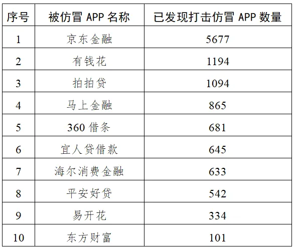 近期,国家网信办反诈中心监测发现多起仿冒投资平台进行诈骗的事件。诈骗分子仿冒京东金融、马上金融、360 借条等平台,推出大量“李鬼”式 App,以相似标志和产品介绍以假乱真,以“小额返利”等诱导网民进行访问下载,进而实施诈骗。部分诈骗平台甚至宣称具有“国企背景”,以“国字头”名义吸引用户,以“拉人头”模式发展下线,给一些网民造成巨大财产损失。