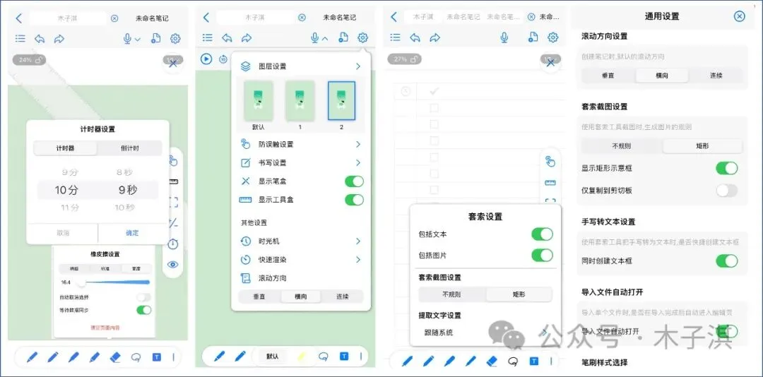 它支持添加多种类型文件,包括:图片、录音、文字文本、手写文本,还支持笔记中添加页面、套索工具、图层设置、合并图层、扫描文稿。