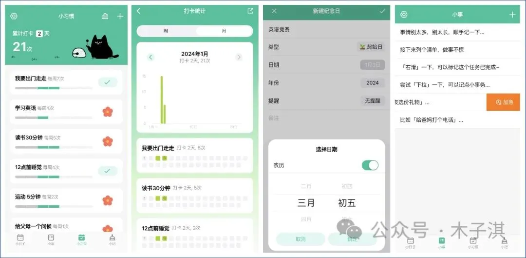 它完全免费,一个软件相当于多个软件,支持的功能包括:日历、习惯打卡、习惯养成、倒数日、纪念日、待办事项。