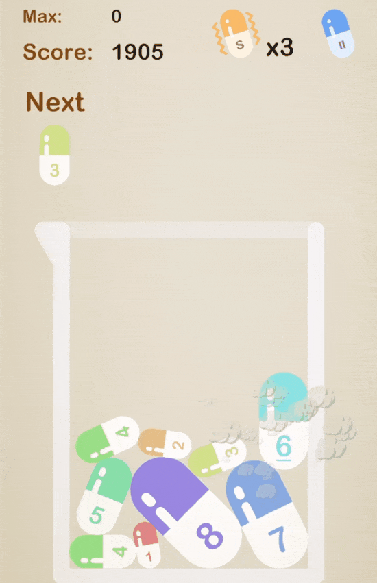 它完全免费,简洁干净,无需网络,小清新风格,非常治愈,玩法简单,轻松有趣,支持相同的小胶囊合成更大的胶囊,拥有悦耳的背景音乐和合成触碰音效,还有好看的合成动画。