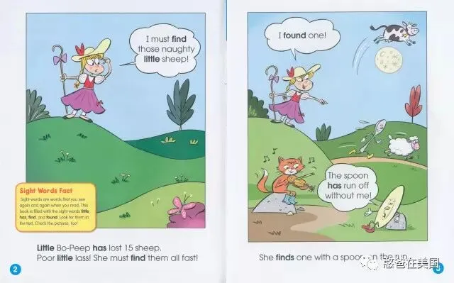 常用词覆盖面很广,有名词、动词、介词、副词等等,甚至还有过去式,比如《Little Bo-Peep’s Lost-and-Found Sheep》这本书,