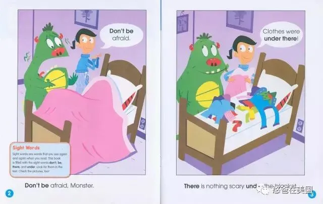 有的书籍会介绍缩写词,比如don’t,《Don’t Be Afraid, Monster》这本书里就有下面这一段,