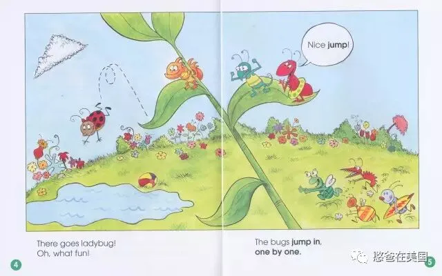 有的书籍会介绍动词,比如jump,《One by One》这本书里就有下面这一段,