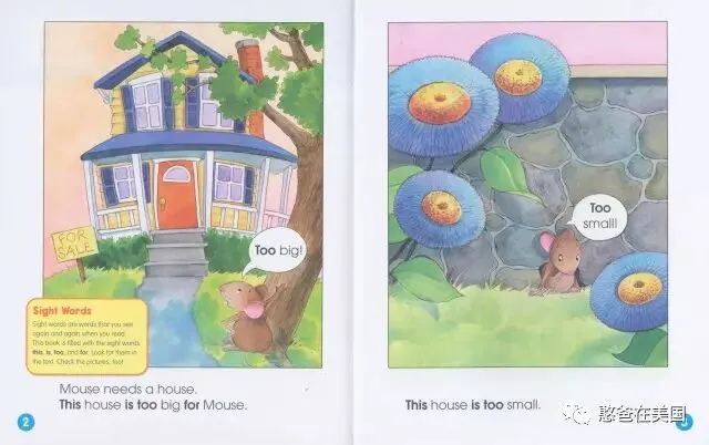 比如说“too … for …”,其中too和for都是常用词,而too和for结合在一起就是一种常用的句式,《A House for Mouse》这本书里有下面这一段,