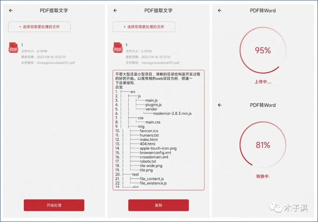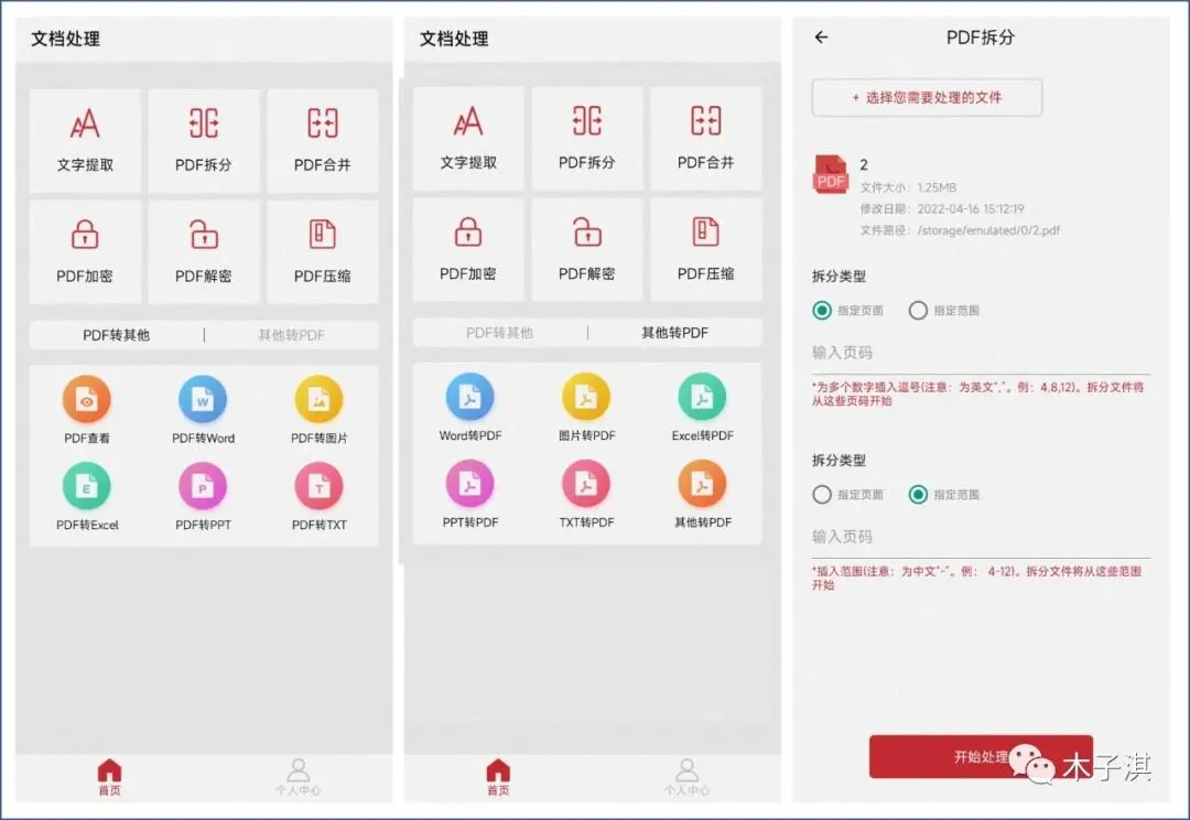 它支持的 PDF 处理功能包括:PDF 文字提取、PDF 拆分、PDF 合并、PDF 加密、PDF 压缩。