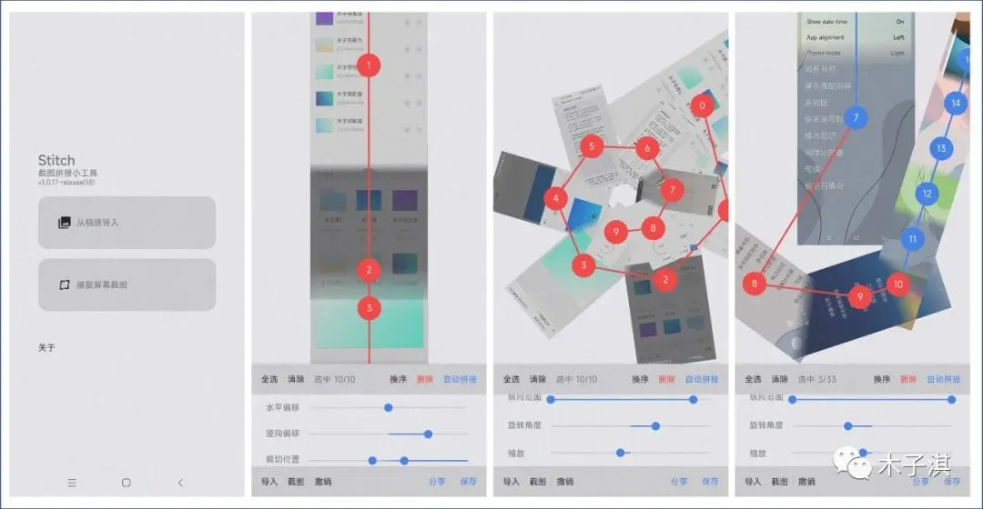它功能非常强大,支持丰富的自定义拼图功能,可以横着拼、可以竖着拼,可以斜着拼,可以旋转拼图,并且没有图片数量限制。