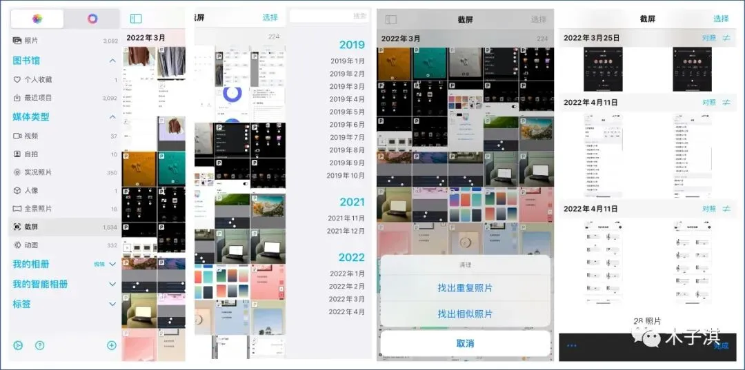它支持实用的照片清理功能,包括:找出重复照片、找出相似照片,可以帮助你对比挑选照片、一键删除重复照片。