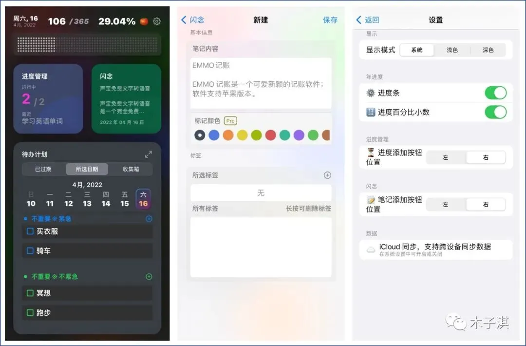 它支持唯美的桌面小组件,可以将今日待办、进度目标、闪念笔记放到手机桌面,一目了然。
