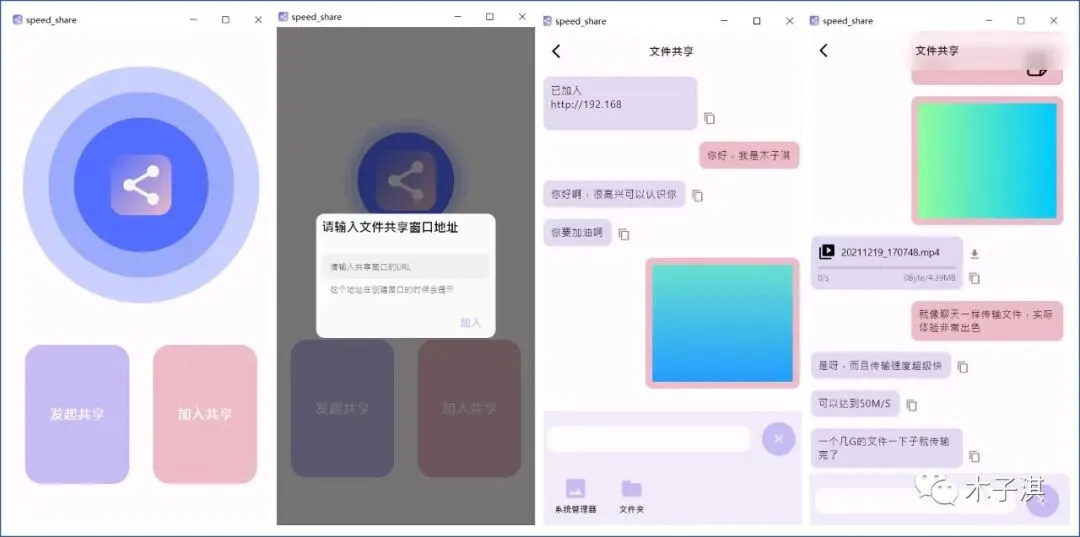 它完全免费,简单轻巧,极简唯美,颜值很高;它支持点对点连接,可以像聊天一样在局域网内共享文件,可以轻松实现手机电脑文件传输,并且传输速度非常快,可以达到 50M/S ,一个几 G 的文件在很短时间就可以传输完成。