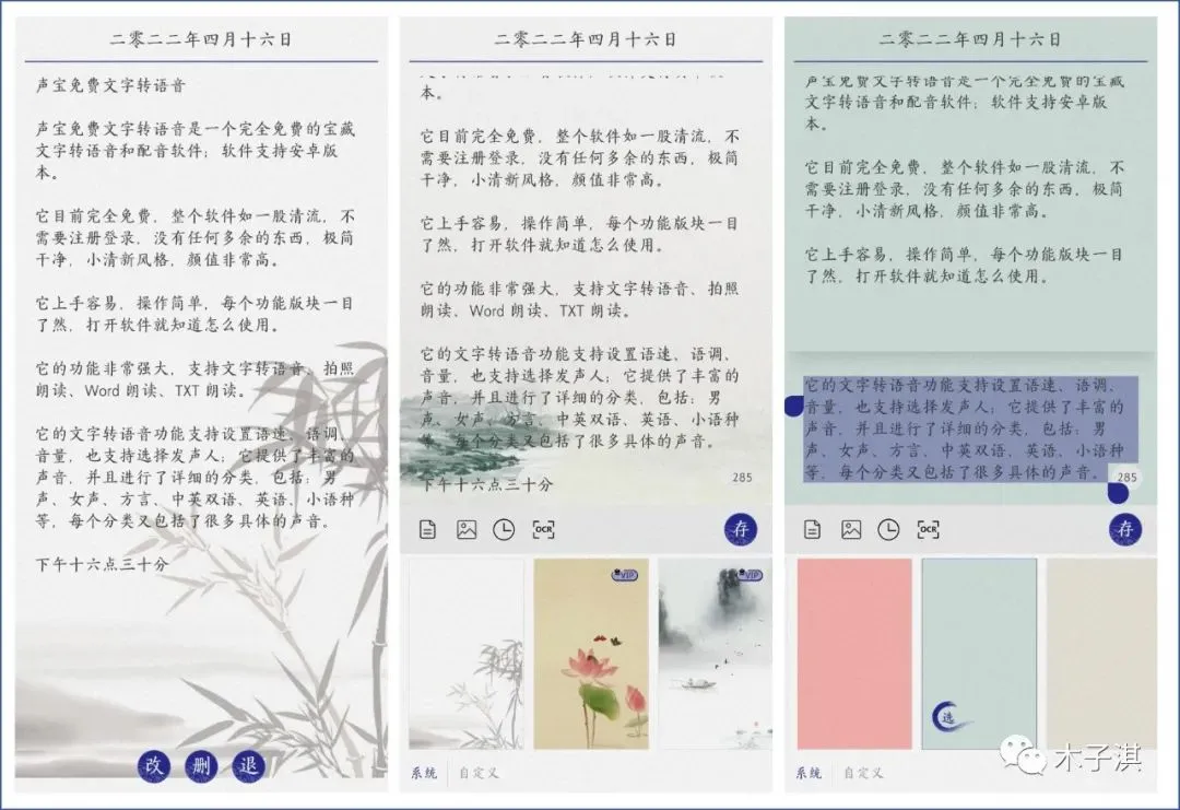 它支持 OCR 文字识别功能,可以帮助你识别文字快速录入,支持丰富唯美的信纸背景,也可以自定义背景。