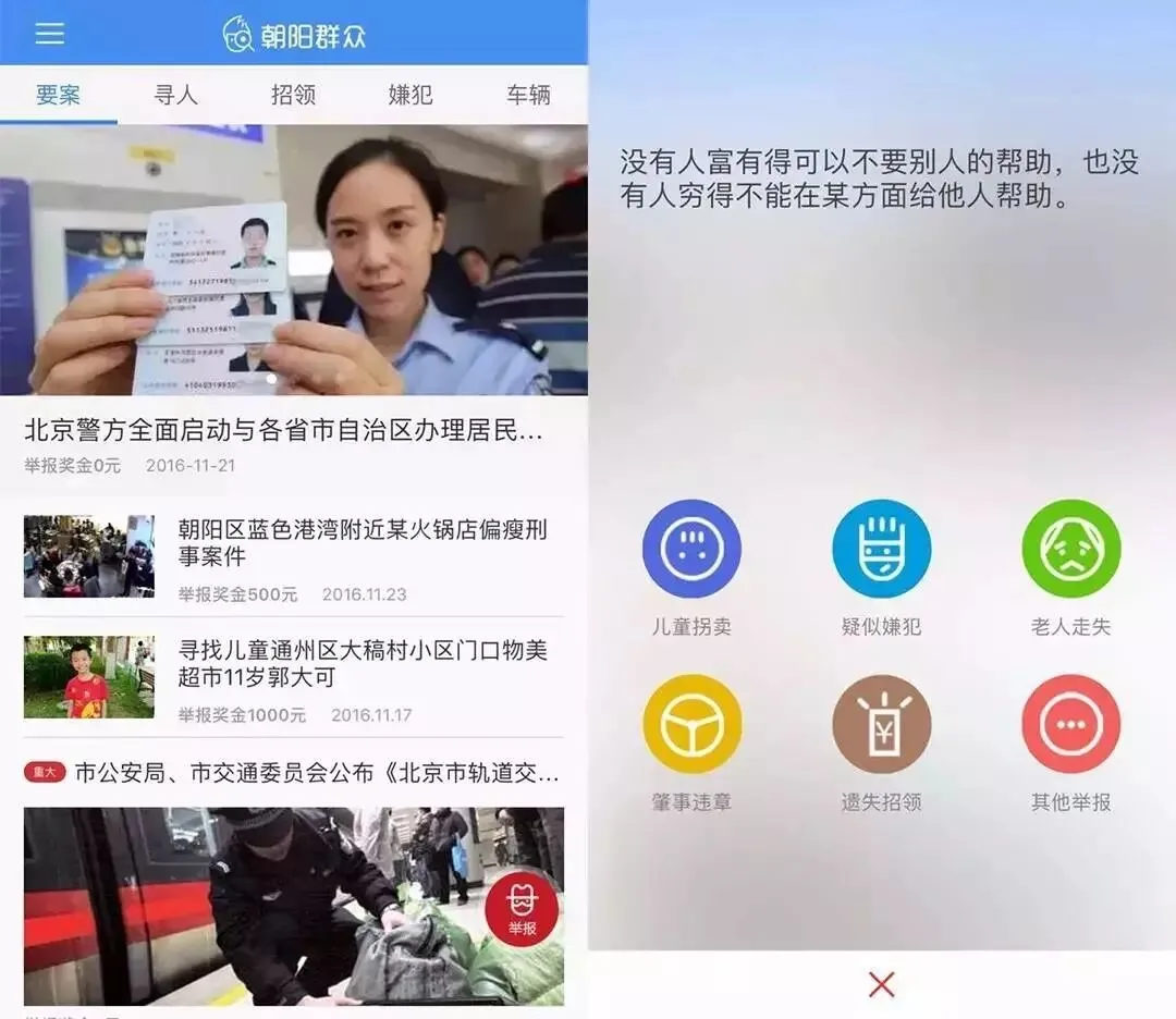 “朝阳群众”APP的上线,虽然不及“朝阳群众”这样的“情报组织”神通广大,却也真的是为警民沟通开了一扇窗。