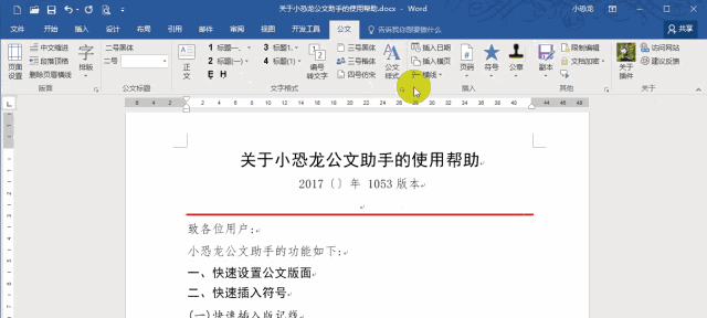 小值今天就和大家分享一款叫做「小恐龙公文排版助手」的Word插件,相比Excel和PPT各式各样的插件, Word插件其实并不多。