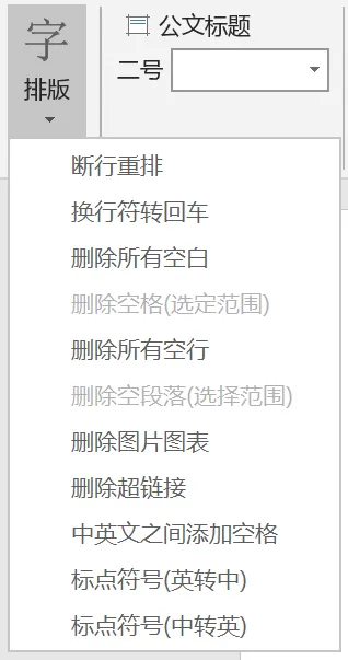 另外在「版面」中还有一个非常赞的功能,就是删除空格、空行、超链接、中英文标点互换等等集合了十几个技巧的排版技巧。