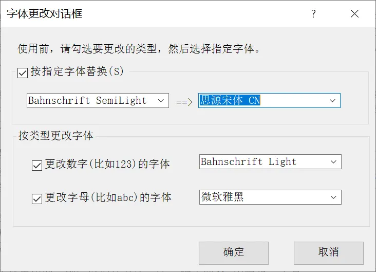 如果不想要这些规范的字体更改,还可以点击「指定字体更改」,随意将任意字体进行批量替换。