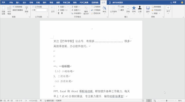 安装的技巧非常简单,直接下载安装包双击安装之后,在 Word 菜单选项中就会出现「公文」的选项卡。