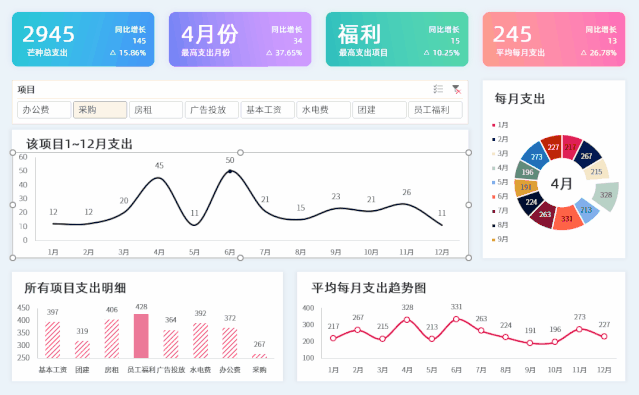 学完课程,你也能在10分钟内做出这种动态仪表盘(课程案例):