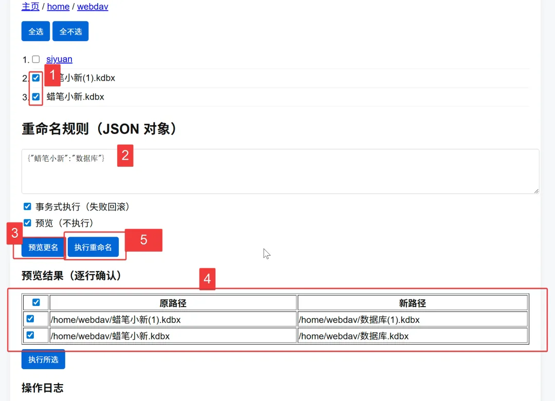 图中,重命名规则我输入的是“{“蜡笔小新”:”数据库”}”什么意思呢,前面“蜡笔小新”是被替换的词,“数据库”是用于替换的词。