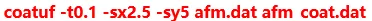 其中「-t」表示厚度,单位为μm;「-sx/-sy」则为延XY方向上放大缩小的倍数,必须与AFM档案的设定相符。执行该指令后,同文件夹底下会新增「afm_coat.dat」资料文件,用户可以进行汇入。