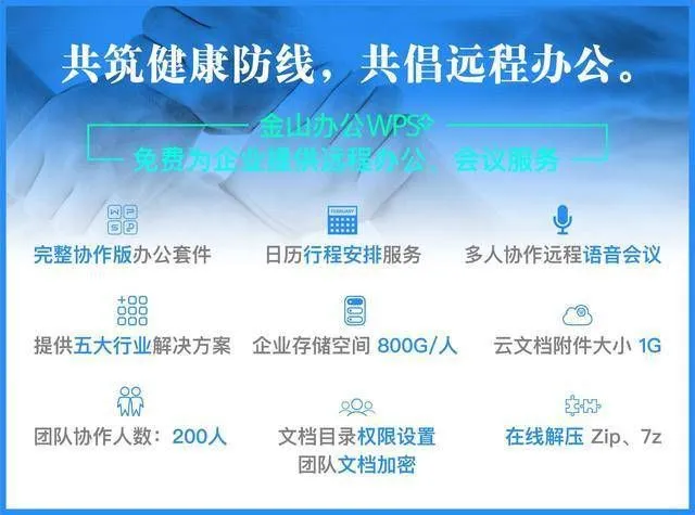 2020年2月1日-5月1日,金山办公旗下“WPS+一站式办公平台”,将免费提供远程办公及音频会议服务WPS。