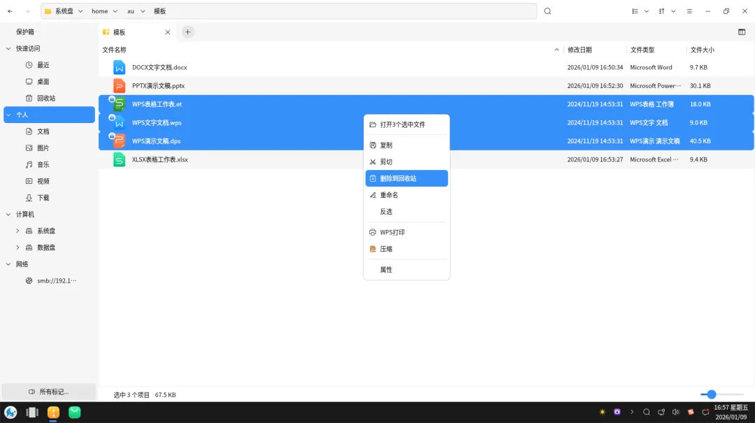 银河麒麟桌面操作系统——如何把WPS办公软件右键菜单中新建的默认格式,从./.dps/.et修改为更通用的.docx/.pptx/.xlsx