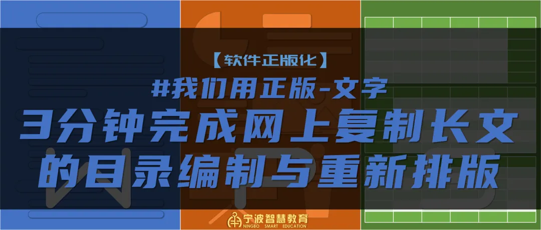 宁波市教育局高度重视并积极推动直属学校“软件正版化”工作。为进一步加快软件正版化工作进程,我们将以普及正版办公软件应用技巧的方式,开展相应的正版软件使用培训。本微信公众号也将推出系列短文,介绍使用正版软件的一些小技巧,为大家日常工作的开展提供一些技术上的帮助。