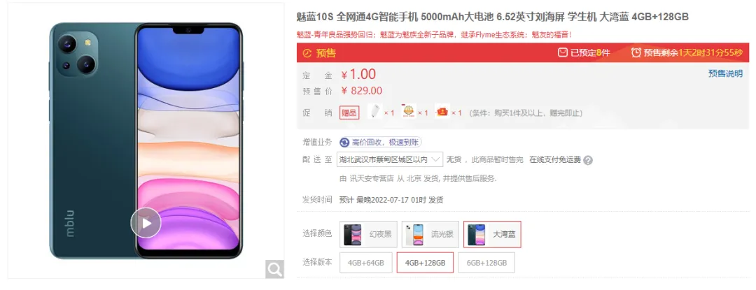 魅族百元机魅蓝 10s 上架