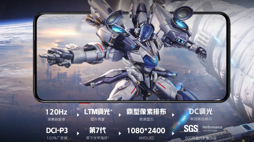 – 屏幕:6.8 英寸 AMOLED UDC 屏下摄像全面屏(UDC Pro 屏显芯片,屏下区域采用鼎型像素排列),分辨率 2400×1080,120Hz 刷新率(60/90/120Hz 三挡调节)、960Hz 触控采样率,10bit 色深,支持 DC 调光,由维信诺供应,第七代超薄屏下指纹,支持心率检测