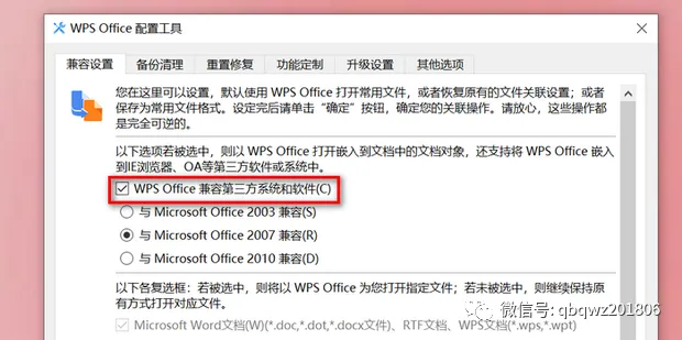 word文档用wps打开排版不对,怎么办? word文档用wps打开排版不对怎么办呢?下面就教大家解决方法。 方法 点击开始菜单栏 2.找到wps点击配置工具 3.点击高级 4.勾选wps office兼容第三方系统和软件即可