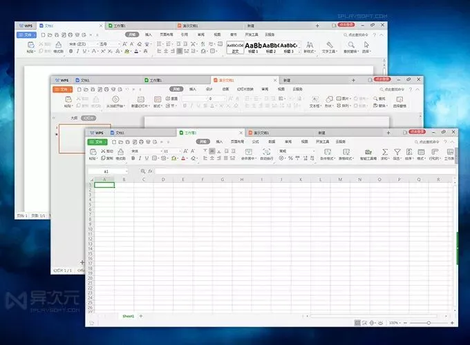 金山 WPS Office 2019 全面采用了全新的「扁平化」界面设计,看起来非常专业时尚!它包含3个主要组件:文字、表格和演示,分别对应微软 Office 的 Word、Excel 和 PowerPoint。