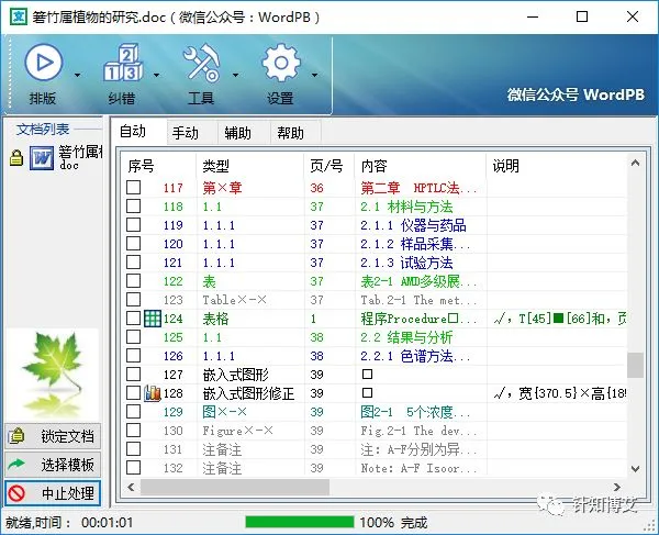 自动处理段落表格,图形,公式,脚注,页眉,页码,域…自动生成目录(主目录、图目录、表目录)