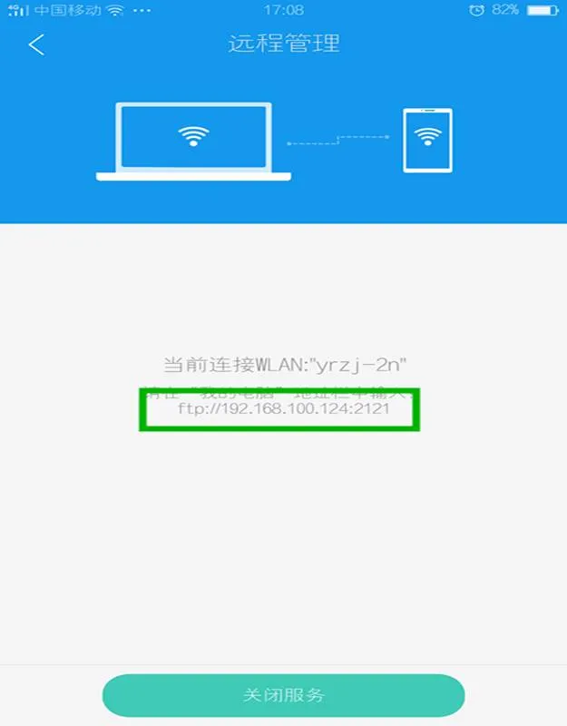 启动远程管理之后,不同的局域网所需要输入的网址也不同,请根据手机提示填写。