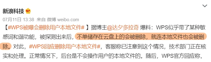昨天上午世超看到一个热搜,说 WPS 会删除用户本地文档。