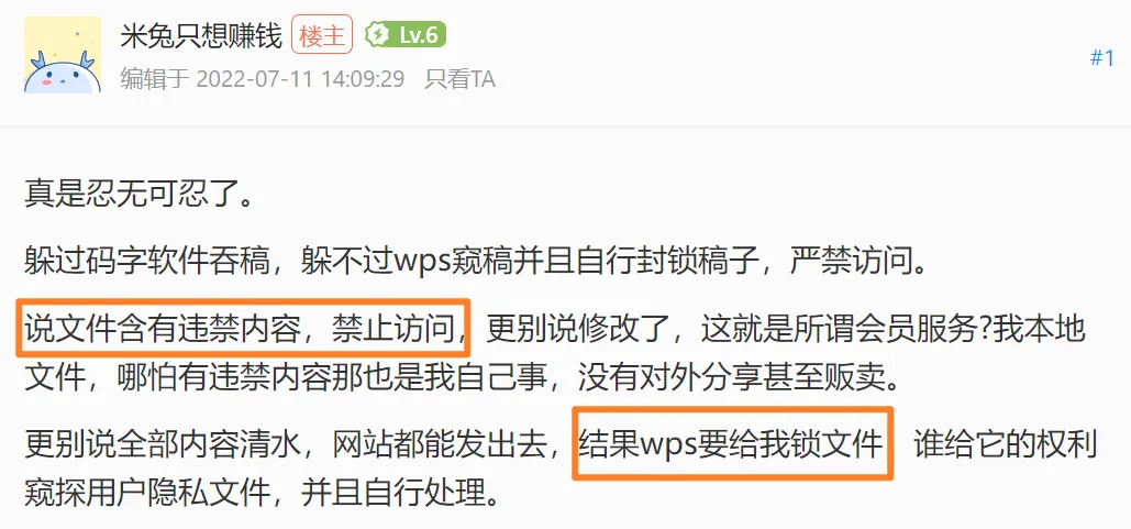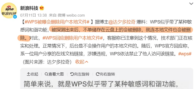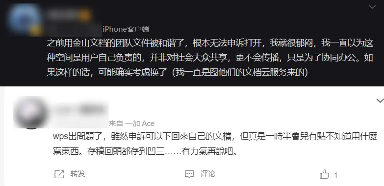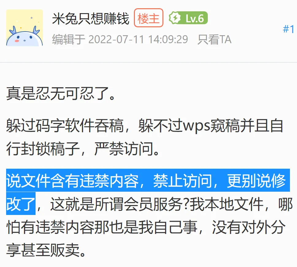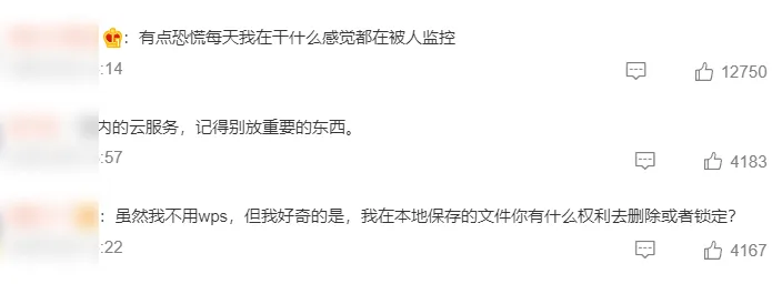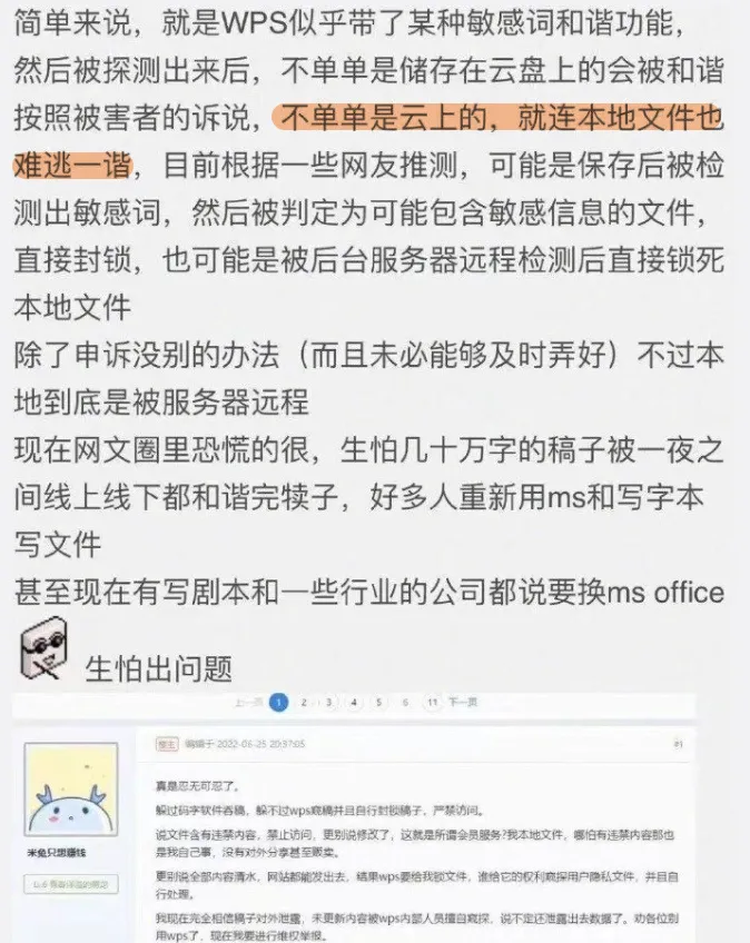 还有人说以后谁敢用 WPS,写着写着文稿就被偷看了。要是不小心触发违禁词,稿子都给你扬了。