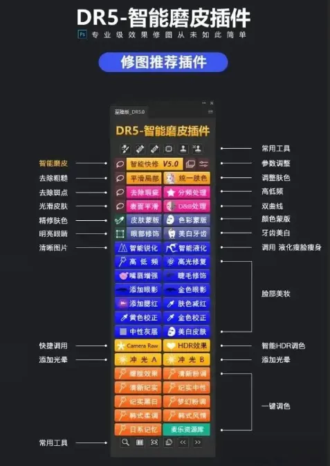 该合集功能强大,覆盖修图、调色、特效、抠图等主流设计场景,具体功能亮点如下: