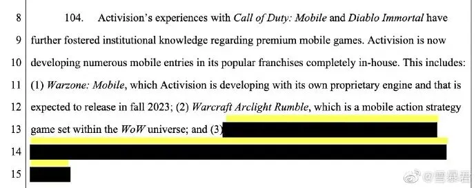 法庭文件证实动视暴雪有三个大IP手游正在开发中,列举了战区和弧光大作战,我猜剩下的那个是暴雪的。