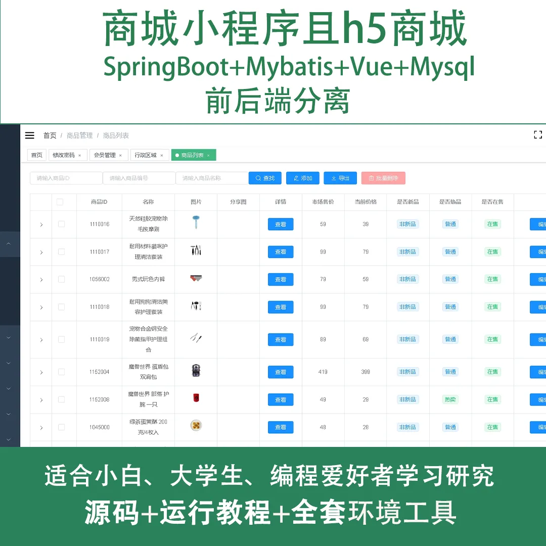 购物商场小程序系统源码 Springboot+Vue+原生小程序