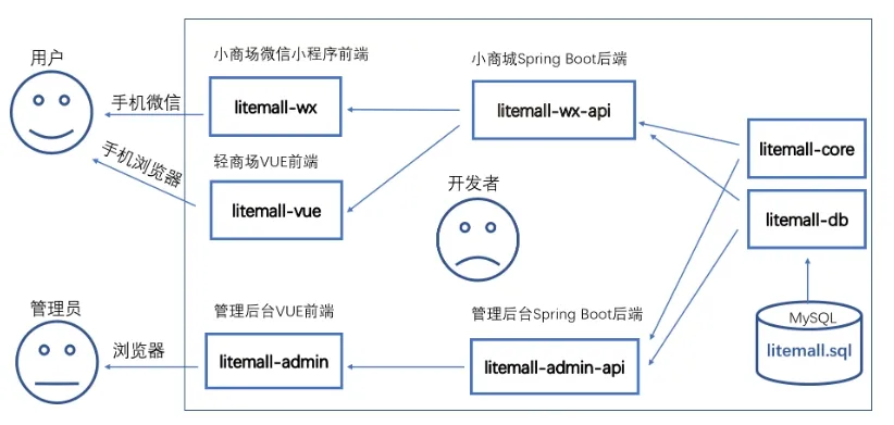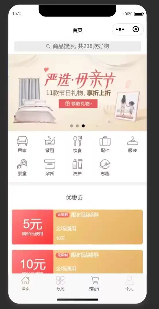 首页、专题列表、专题详情、分类列表、分类详情、品牌列表、新品首发、人气推荐、优惠券列表、团购、搜索、商品详情、商品评价、商品分享、购物车、下单、订单列表、订单详情、订单售后、地址、收藏、足迹、意见反馈、客服