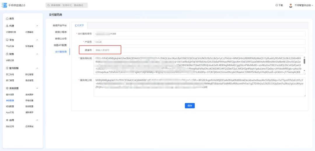 示例:订单总价100元,供货商分账30元,平台留存70元。