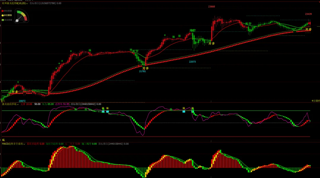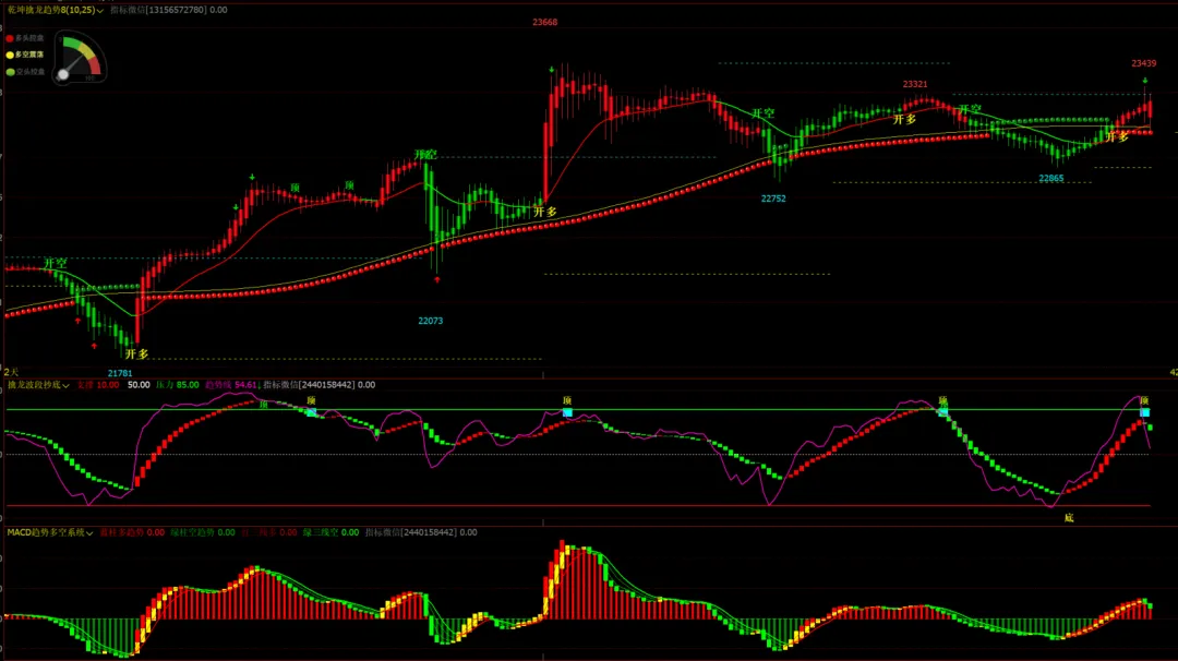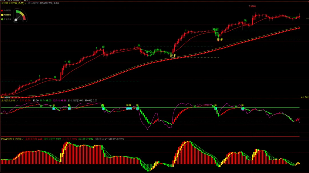 1、指标名称:乾坤擒龙趋势主图,擒龙波段抄底幅图,macd趋势多空系统幅图,主图幅图无未来函数