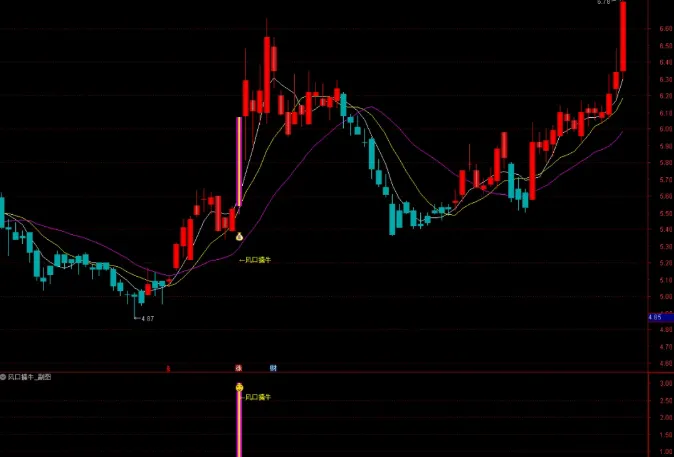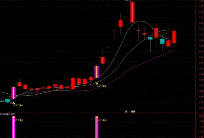 DRAWTEXT(BB,L*0.95,’←风口擒牛’),COLORYELLOW;