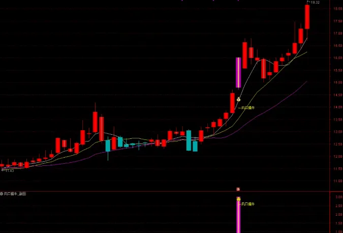 {输出信号:风口擒牛,即擒牛条件成立时输出选股信号}
