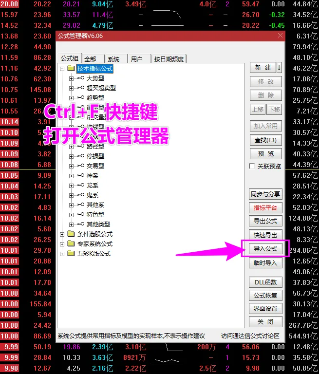 导入成功后就可以在公式管理器的对应目录下找到导入的指标了。