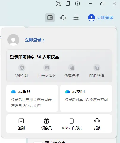 步骤一:在wps右上角点击立即登陆,