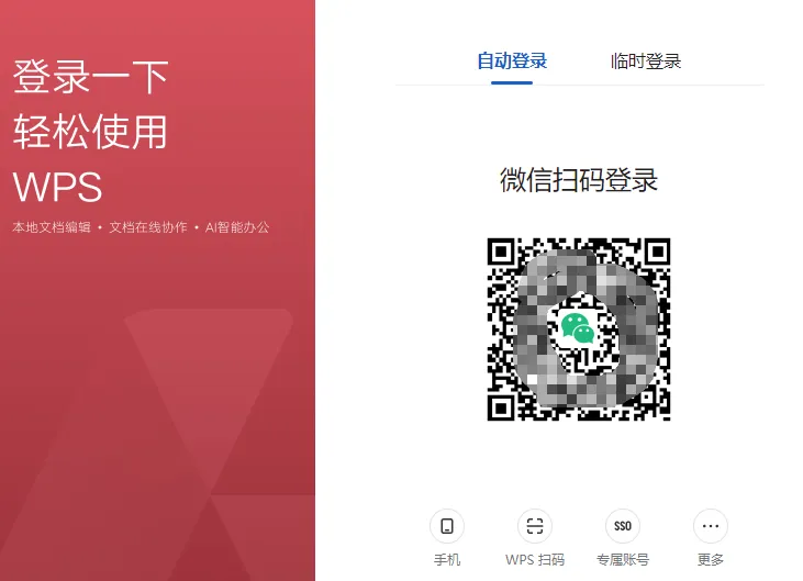 步骤二:选择用微信登录,(在别人电脑上使用可以选择临时登录)