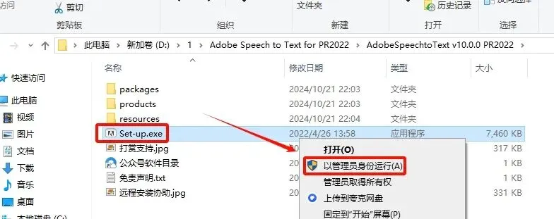 2.打开刚刚解压的文件夹,鼠标右键点击“Set-up.exe”选择“以管理员身份运行”