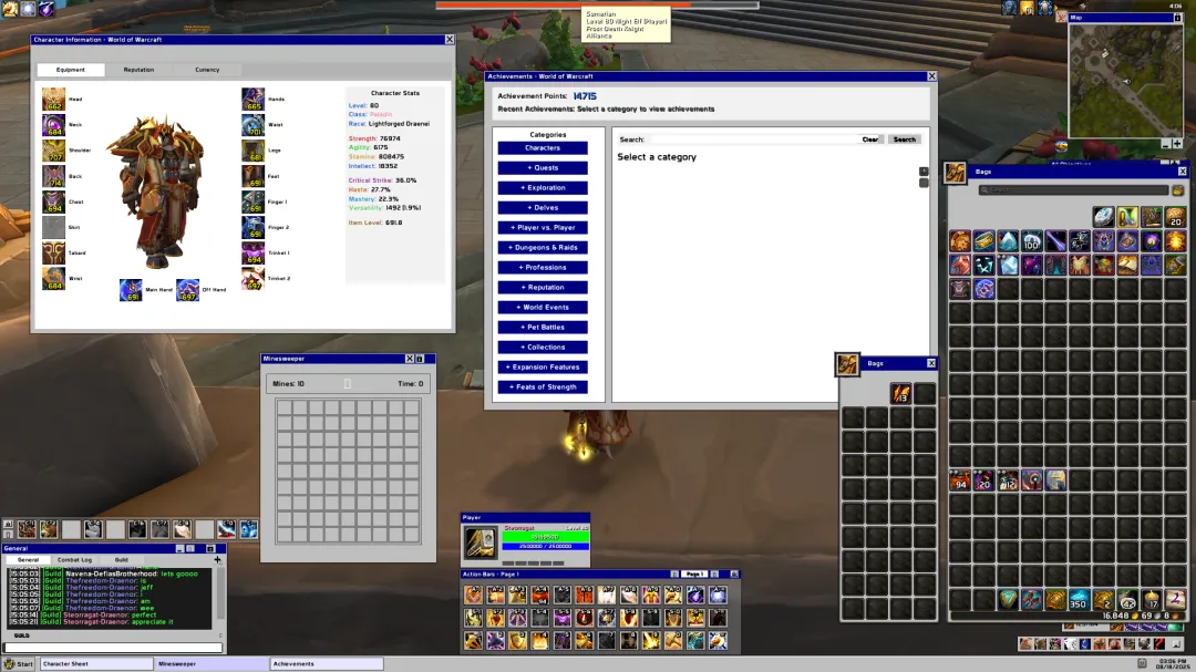 • 小地图:主题化方形小地图,带有插件容器按钮和声望按钮。