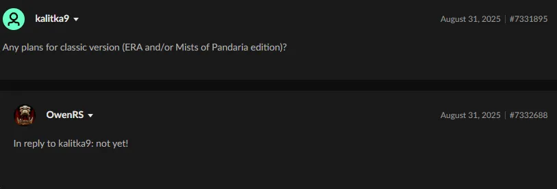 该插件当前仅支持正式服《地心之战》,有玩家询问是否有支持永久服60和熊猫人之谜的计划,作者回复说 “还没有”。