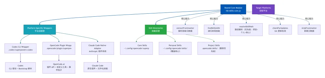 - 复用与低耦合:针对不同平台(Claude Code/Codex/OpenCode)提取通用核心逻辑(如lib/skills-core.js),避免重复造轮子,这正是架构师「复杂度降低」的核心思路;