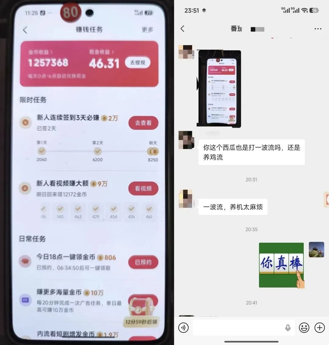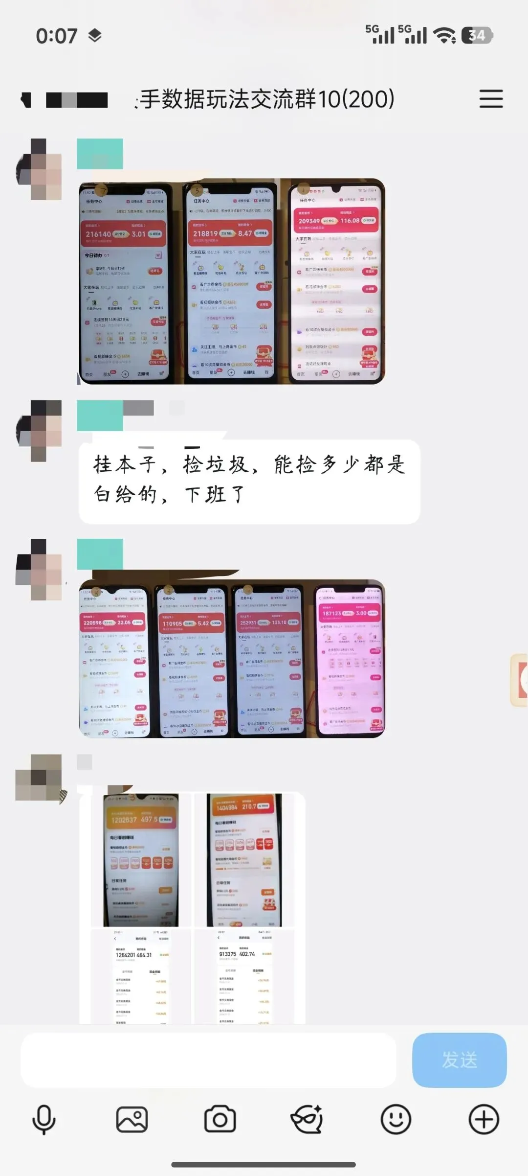 看看群里的收益分享就知道,付出就有回报:每天单机20-30+,十台手机月入6000+,能帮你解决不少生活烦恼~