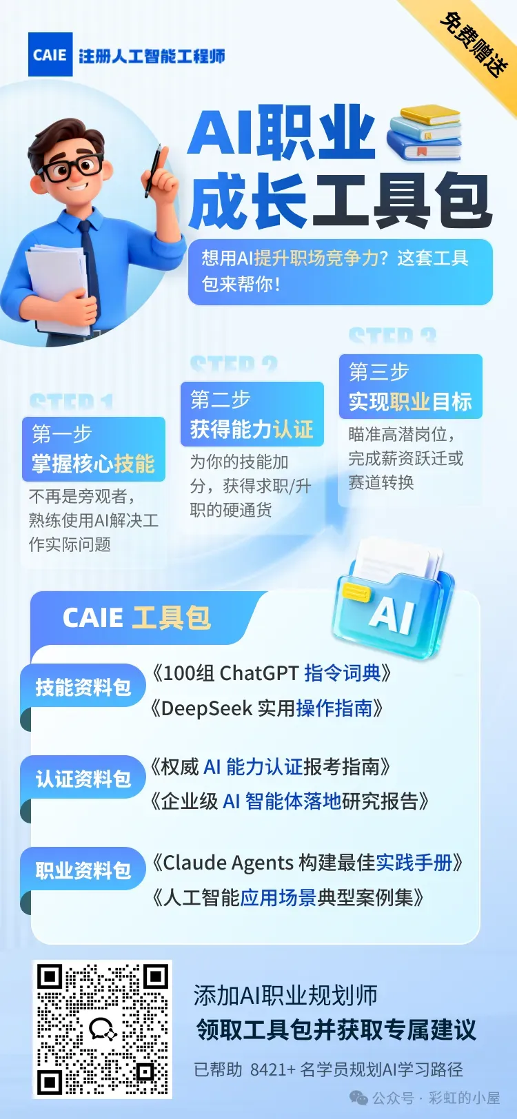 工具类付费资源:必要时可购买1-2个付费工具提升效率,比如100-200元的代码编辑器插件包、数据接口测试工具,或低价的云服务器(学生机每月10-20元)用于项目部署测试,避免为不必要的“会员权益”付费。此外,对于希望系统梳理AI技能并获得权威背书的爱好者,可考虑CAIE(Certificated Artificial Intelligence Engineer)注册人工智能工程师认证的入门级考试,其Level I报名费仅200元,符合低成本投入要求,且配套提供辅导课程、备考资料与题库,考核内容涵盖Prompt进阶技术、AI商业应用等与副业开发高度相关的实用技能,适配碎片化学习节奏,每天1小时投入,2-4周即可完成备考。